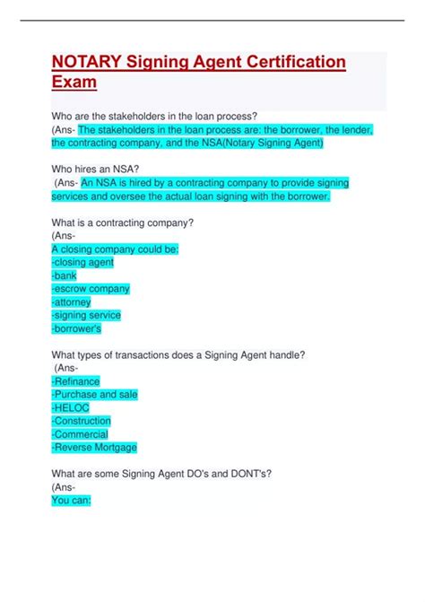 Download online Notary Signing Agent Certification Exam Answers Doc